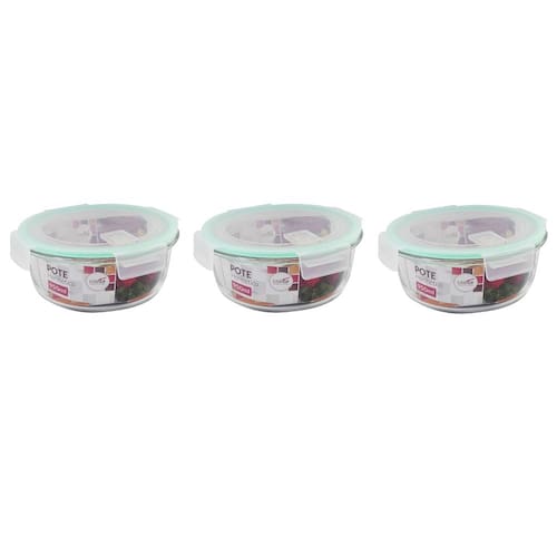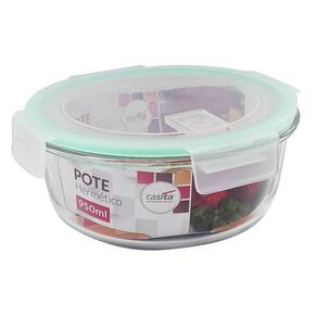 3 Potes Herméticos Redondo De Vidro 950ml com Tampa CA12654 CasitaCARACTERÍSTICAS:- Os potes da linha Casita são versáteis para a cozinha, servindo para organizar mantimentos e guardar alimentos. O pote hermético redondo, com capacidade para 950 ml, é ideal para conservar sobras de refeições na geladeira.- Fabricado em vidro borosilicato, um material termo-resistente e robusto, que evita manchas e odores, além de facilitar a limpeza. O material não contém BPA. O recipiente pode ser utilizado em forno, freezer, geladeira, micro-ondas e lava-louças, resistindo a choques térmicos e a temperaturas de até 400°C. A tampa hermética veda completamente o recipiente e mantém os alimentos frescos por mais tempo.- O sistema de travas nos quatro lados oferece segurança e previne vazamentos.LIMPEZA:- Lavar com detergente neutro, esponja macia e secar imediatamente. Não é recomendado lavar em máquinas, nem utilizar produtos químicos.ESPECIFICAÇÕES:- Marca: Casita- Referência: CA12654- Capacidade: 950 ml- Material: Vidro Borosilicato- Cor: Transparente- Dimensões: Ø 17,7 x 17,7 x 7,2 cm- Peso: 575 gCONTEÚDO DA EMBALAGEM:3 Potes Hermético Redondo De Vidro 950 ml