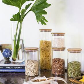 - 01 Pote de Vidro com Tampa de Bambu 500ML
