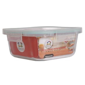 1 Conjunto com 3 Potes Herméticos de Vidro Quadrados (320ml, 520ml, 800ml) Invista na conservação dos seus alimentos e na organização da sua cozinha com este kit de potes herméticos de vidro. Adquira já o seu e transforme sua rotina!