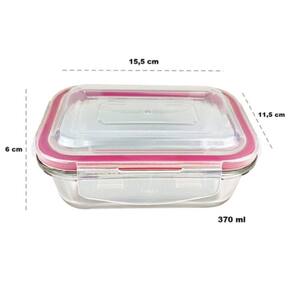 - Material: vidro 5 mm - Tampa plástica com borracha de alta vedação - Trava nos 4 lados - Capacidade 600 ml - Cor única, borracha de vedação na cor Rosa Marca: Não Informado