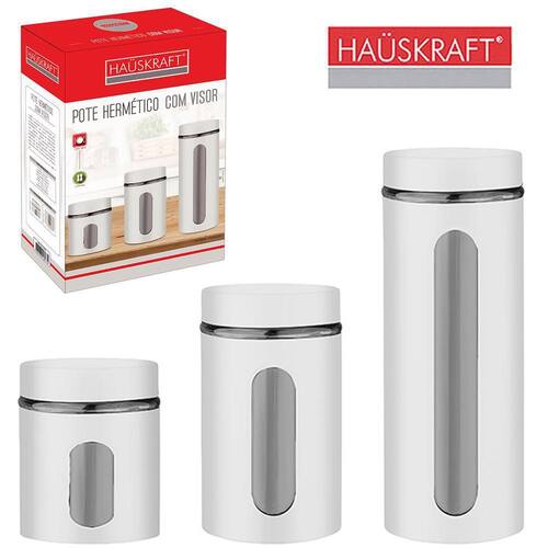 Pote de vidro / inox redondo com tampa branco com 3 peças Pote de vidro / inox redondo para mantimentos com tampa branco hauskraft com 3 pecas 600/900/1200mlInformações adicionais: Ean: 7896980489774 Validade: indeterminada Capacidade: 600ml, 900ml e 1,2l Tamanho aproximado dos potes: 1 peça: 10 x 10 x 12,5cm 1 peça: 10 x 10 x 17,5cm 1 peça: 10 x 10 x 22,5cm Tamanho aproximado da caixa: a:31,5xl:20,5cm Peso aproximado: 2080g Tipo de produto: pote redondo para mentimentos com tampa hauskraft 3 peças Cor: branco Composição: vidro e inox