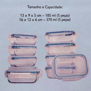 Capacidade Variada: O conjunto é composto por 10 potes com diferentes capacidades, adequando-se perfeitamente às suas necessidades de armazenamento.