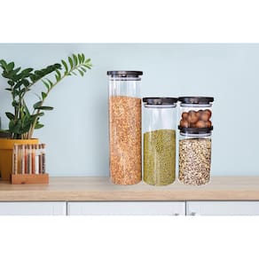 Chega de bagunça dentro dos armários! Os Potes de Vidro Organizadores chegaram para te ajudar na organização dos alimentos, levando mais praticidade para a sua cozinha. Versátil, combina funcionalidade com um design moderno. Feito de vidro transparente e resistente, permite visualizar o conteúdo com facilidade. Empilhável, possui 4 tipos de litragens e tamanhos diferentes: 500ml, 1L, 1,5L, 2L. Produzido em vidro borosilicato, com tampa em polipropileno e acabamento em silicone, ele é livre de BPA e pode ser colocado no freezer e na lava-louças. Os alimentos ficam protegidos e conservados em seu interior, já que possui borracha para vedação. Excelente opção para quem gosta categorizar grãos e sementes com estilo!