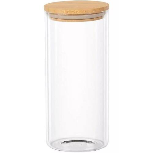 Pote de Vidro Tubular com Tampa de Bambu 1,7L 27,5x10cm Transparente -