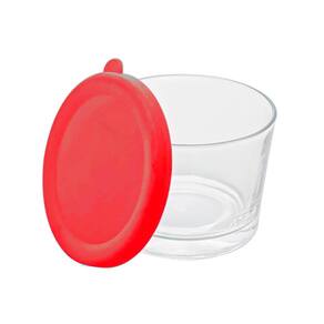 A tigelas em vidro da Lyor possui tampa de plástico na cor vermelha. Com 200mL de capacidade os potes são ideais para armazenar diversos tipos de alimentos e condimentos. Possui 5,5cm de altura e 8cm de diâmetro.