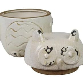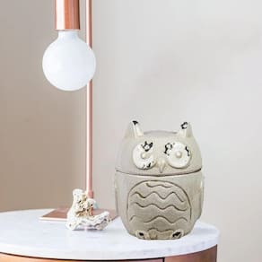 Pote decorativo cerâmica coruja retrô off white 20 x 15 Na sabedoria popular, a coruja é conhecida como símbolo da inteligência, sabedoria e mistério, já que ela enxerga no escuro e consegue ver o que os outros não veem. Verdade ou não, a ave faz muito sucesso no mundo da decoração Além de todo esse encanto, apresentamos um lindo pote decorativo coruja. Os potes decorativos de cerâmica deixam o ambiente requintado e ainda mais bonito. Com tampa também em cerâmica, na cor off white e design retrô Dica importante: o ideal é que o pote tenha harmonia com a decoração do ambiente. Altura: 20 cm Largura: 15 cm . Cuidados com o produto: para maior durabilidade, limpe utilizando um pano seco ou uma esponja macia. Não use nenhum material áspero, molhado ou produto abrasivo. Para manter o brilho pode ser utilizada cera automotiva. . Ref: r1784