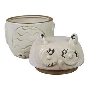 Pote decorativo cerâmica coruja retrô off white 20 x 15