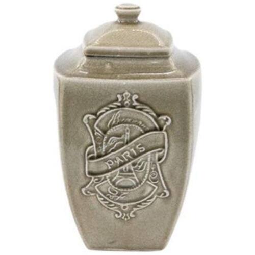 Os potes decorativos de cerâmica deixam o ambiente requintado e ainda mais bonito. Lindo pote decorativo com tampa em cerâmica na cor marrom brilhante, design retrô, paris.