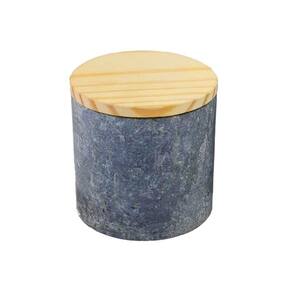 01 Pote em Pedra Sabão Tampa Madeira Guardar Armazenar 8x8cm.