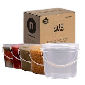 Balde transparente 1.8 litros com tampa lacre de segurança 100% bpa free - kit com 10 peças Importante: Os baldes sao comercializados vazios e sem impressão. O titulo do anuncio e o rotulo na foto são apenas sugestoes de uso Conteúdo do kit: 10 x baldes transparentes com alça plástica de 1.8 litros 10 x tampas plásticas transparentes com lacre de segurança Imagine abrir sua geladeira e encontrar todos os seus alimentos perfeitamente organizados e protegidos. Com nossos baldes transparentes, você visualiza o conteúdo sem precisar abrir as tampas, economizando tempo e evitando bagunça. A tampa com lacre de segurança garante que seus alimentos permaneçam frescos por mais tempo, evitando desperdícios e economizando dinheiro. Os baldes industriais da nastripack são fabricados com matéria-prima 100% virgem e atóxica, em conformidade com os requisitos da anvisa. Produzidos em equipamentos de última geração, esses baldes apresentam alta produtividade e baixo impacto ambiental. Ideal para: Uso comercial: restaurantes, padarias, lanchonetes, food trucks, cozinhas industriais. Uso doméstico: organizar e armazenar alimentos na geladeira, freezer ou despensa. Vantagens: Perfeito para congelamento: congele porções individuais de alimentos ou guarde sobras de forma segura e prática. Resistência térmica: suportam baixas e altas temperaturas, sendo aprovados para contato direto com alimentos. Versatilidade: ideal para armazenamento de tintas, químicos, produtos agrícolas, lubrificantes e alimentos. Tampa lacre: fechamento seguro e fácil de colocar, com design que permite empilhamento seguro. Reutilizáveis e sustentáveis: diminua o uso de embalagens descartáveis e contribua para um planeta mais limpo. Estes baldes são resistentes e podem ser reutilizados diversas vezes Fácil transporte: leves e com alça resistente, são práticos para transportar seus alimentos com segurança. Benefícios: Segurança alimentar: fabricados em polipropileno virgem, 100% livre de bpa e atóxico, garantindo que seus alimentos estejam protegidos e conservados de forma segura. Tampa com lacre de segurança: vedação hermética que impede a entrada de ar, umidade, poeira e insetos, mantendo seus alimentos frescos por mais tempo. Transparência: visualize o conteúdo sem precisar abrir o balde, facilitando a organização e identificação dos alimentos. Empilhável: otimize o espaço de armazenamento, seja na geladeira, freezer, despensa ou prateleiras. Resistente: suporta baixas e altas temperaturas, podendo ser levado ao freezer ou micro-ondas sem a tampa . Satisfação garantida: se por algum motivo você não estiver satisfeito com o produto, oferecemos de devolução do seu dinheiro. Compre agora e experimente a diferença Especificações técnicas: Balde: Diâmetro interno superior: 144,60 mm Diâmetro interno inferior: 125,00 mm Diâmetro externo superior: 152,90 mm Diâmetro externo inferior: 128,60 mm Diâmetro externo máximo: 164,50 mm Altura interna: 126,60 mm Altura externa: 129,50 mm Altura com a tampa: 130,50 mm Espessura média lateral: 0,75 mm Espessura média no fundo: 0,77 mm Peso: 50 gramas Material: polipropileno random Tampa: Diâmetro externo: 191,50 mm Altura: 12,10 mm Espessura média de parede: 0,80 mm Peso: 18 gramas Material: polipropileno random Descrição do produto: O balde transparente de 1.8 litros com tampa lacre é um recipiente versátil, projetado para o armazenamento seguro de alimentos. A transparência do balde facilita a visualização do conteúdo, tornando mais prático o uso no dia a dia. Principais características: Material seguro: fabricado em polipropileno pp de alta densidade, seguro para contato com alimentos. Design prático: a forma redonda permite empilhamento fácil, otimizando o espaço de armazenamento. Capacidade adequada: com 1.8 litros, é ideal para uso comercial em restaurantes, padarias, indústrias alimentícias, entre outros.