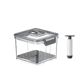 Máxima conservação dos alimentos com vedação a vácuo Dimensões compactas: 15cm x 15cm x 12cm, perfeito para qualquer espaço Acompanha bomba manual para remoção rápida do ar Reduz a exposição ao oxigênio, prolongando a vida útil dos alimentos Produzido em plástico resistente e livre de BPA Corpo transparente para fácil visualização do conteúdo Tampa com trava lateral para vedação firme e segura Formato retangular e empilhável, otimiza o espaço em armários e geladeiras