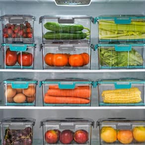 A tampa com trava lateral garante vedação firme e segura. Seu formato retangular é empilhável, o que facilita a organização em armários, prateleiras e geladeiras.