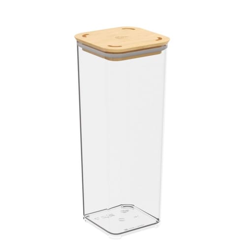 Transforme sua rotina com o Pote Hermético da Linha Modo Coza! Com vedação de alta qualidade, esse pote de 1,5L mantém seus alimentos frescos e saborosos por mais tempo, reduzindo desperdícios. Seu design compacto de 9,8 x 9,8 x 25 cm é empilhável e modular, aproveitando ao máximo o espaço na despensa ou armário. A transparência facilita a visualização, permitindo que você encontre o que precisa rapidamente. Com sistema de encaixes exclusivo, o Pote é seguro para empilhar e transportar sem riscos de derramamentos. A tampa em bambu com acabamento em verniz protege contra mofos e fungos. Feito de poliestireno (PS) resistente e durável, é 100% livre de BPA e reciclável, garantindo praticidade, elegância e sustentabilidade à sua cozinha.
