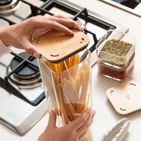 Transforme sua rotina com o Pote Hermético da Linha Modo Coza! Com vedação de alta qualidade, esse pote de 1,8L mantém seus alimentos frescos e saborosos por mais tempo, reduzindo desperdícios. Seu design compacto de 9,8 x 9,8 x 30 cm é empilhável e modular, aproveitando ao máximo o espaço na despensa ou armário. A transparência facilita a visualização, permitindo que você encontre o que precisa rapidamente. Com sistema de encaixes exclusivo, o Pote é seguro para empilhar e transportar sem riscos de derramamentos. A tampa em bambu com acabamento em verniz protege contra mofos e fungos. Feito de poliestireno (PS) resistente e durável, é 100% livre de BPA e reciclável, garantindo praticidade, elegância e sustentabilidade à sua cozinha.