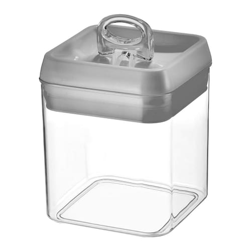 A base transparente, feita de poliestireno, não apenas oferece a aparência elegante do vidro, mas também permite que você visualize facilmente o conteúdo do pote sem precisar abrir. A tampa na cor cinza frio é versátil e, com a alça integrada, torna o transporte do pote mais conveniente.