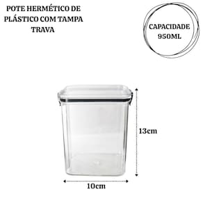 Capacidade: 950ml – tamanho ideal para armazenar diversos tipos de alimentos. Material: Plástico resistente e livre de BPA, garantindo segurança para os alimentos. Vedação hermética: Tampa com fechamento seguro que mantém os alimentos frescos por mais tempo. Transparente: Facilita a visualização do conteúdo sem precisar abrir.