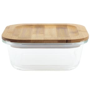 Pote Hermético De Vidro Flat 800ml Com Tampa De Bambu