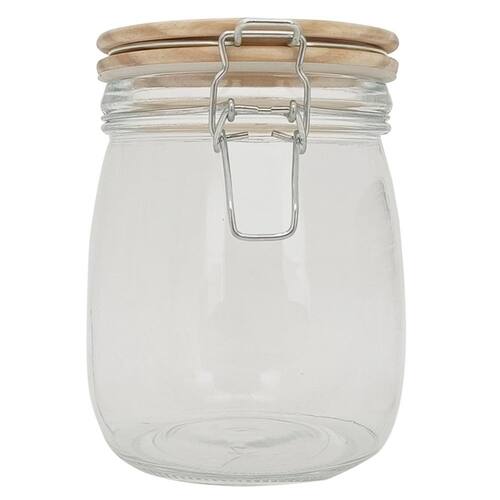 Pote Hermetico de Vidro Mimo Style com Tampa de Madeira 750 ml – Praticidade e Elegância para Sua Cozinha