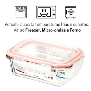 Os potes com tampas herméticas são perfeitos para o dia a dia pois garantem o melhor sabor, não fica com cheiro indesejado e você pode esquentar no Micro-ondas ou Forno (Tire a tampa nesses casos). Ideal para quem trabalha e leva o alimento de casa, ou para guardar diversos alimentos na geladeira/freezer. Além do mais, é fácil de lavar e super resistente.