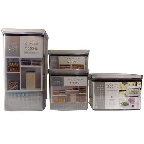 Plástico PS Cristal combina elegância do acrílico com a resistência do plástico, sendo um material muito versatíl.Características:Conteúdo da Embalagem: 01 Pote Hermético Retangular 580 mlMedidas Aprox: 14cm comprimento x 9cm largura x 7cm alturaMaterial Externo: PlásticoMarca: ParamountConteúdo da Embalagem: 01 Pote Hermético Retangular 1300 mLMedidas Aprox: 14cm comprimento x 9cm largura x 14cm alturaMaterial Externo: PlásticoMarca: ParamountConteúdo da Embalagem: 01 Pote Hermético Retangular 2.600 mlMedidas Aprox: 14cm comprimento x 9cm largura x 28cm alturaMaterial Externo: PlásticoMarca: ParamountConteúdo da Embalagem: 01 Porta Tudo Fresh 1800 MLMedidas Aprox: 18cm comprimento x 13cm largura x 12cm alturaMaterial Externo: PlásticoMarca: ParamountObservação:Foto: Imagem Meramente IlustrativaGarantia: Contra defeitos de fabricação
