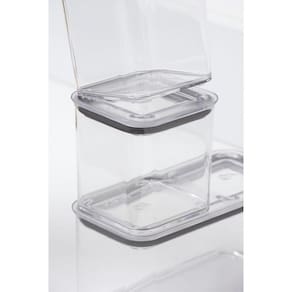 Seu sistema de encaixe não apenas otimiza espaço, mas também proporciona versatilidade, com inúmeras opções de empilhamento, seja de potes maiores sobre os menores ou retangulares acima dos quadrados e vice-versa.