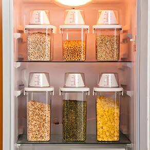 Perfeito para Armazenar: Uma ampla variedade de alimentos secos, incluindo grãos (arroz, feijão), massas, produtos de panificação, farinha, açúcar, cereais, nozes, biscoitos e muito mais.