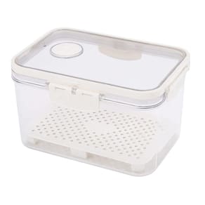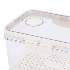 Seu escorredor interno permite drenar a água com facilidade, ajudando a manter os alimentos secos por mais tempo e aumentando sua durabilidade na geladeira.