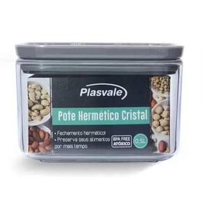 Pote Hermético Plasvale Pequeno 500ml Cristal Quadrado para Mantimentos Chumbo.