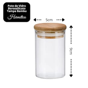 Pote Hermético Porta Condimentos e Temperos em Vidro Borossilicato com Tampa de Bambu – 110ml