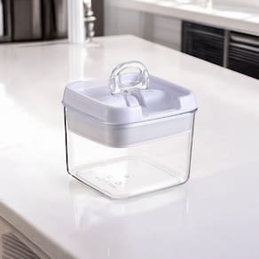 - Design funcional: Formato quadrado que otimiza o armazenamento em armários e despensas.