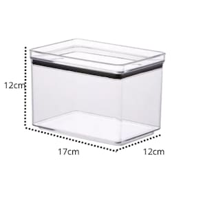 POTE HERMÉTICO QUADRADO 1800ML Chega de ter uma cozinha toda desorganizada. Chegamos com a solução, organização rápida e com praticidade em guardar e pegar os alimentos que deseja, sem contar na beleza visual que te trará, além de ter em sua casa potes da melhor marca do mercado nesse setor. Características: - Empilhável - Vedação completa - Capacidade de 1800ml - Material: Acrílico - Medidas: 17cm (Comprimento) x 12cm (Largura) x 12cm (Altura) CUIDADOS COM A PEÇA: - Para remover a poeira, use um espanador - Se necessário, lave a peça com água fria ou morna - Utilize sabão ou detergente neutro - Para remover manchas de gordura, utilize um pano macio, limpo e umedecido