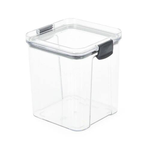Pote Hermético Quadrado Transparente com Trata 1L Preto Organização com estilo, pote com vedação que isola bem e mantem o sabor, aroma e textura dos alimentos por muito mais tempo, possui vedação com anel de silicone e 2 travas laterais que dão um reforço maior, pode ser usando para armazenar alimentos secos como grãos, temperos, biscoitos como também conservas, molhos etc., possui tampa que permite empilhamento, deixando seu armário mais organizando aproveitando cada espaço.
