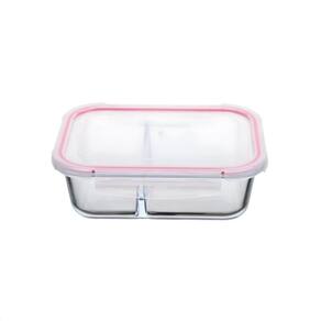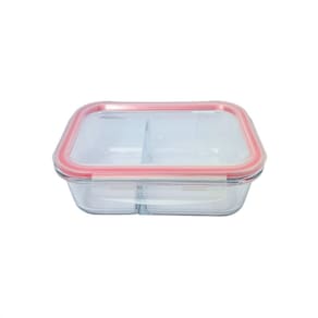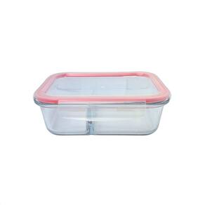 Pote Retangular De Vidro Com Divisória Interna para separar alimentos e organizar marmitas. A tampa com vedação e travas garante fechamento firme, ajudando a conservar melhor o conteúdo e evitar odores na geladeira. Ideal para refeições, armazenamento e levar ao trabalho com apresentação limpa e prática.