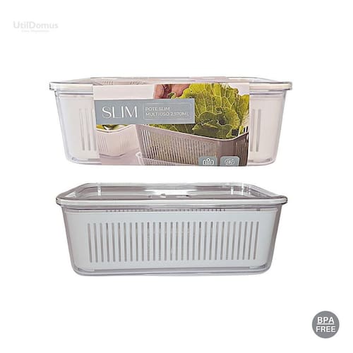 contém na embalagem: 01 pote slim multiuso com cesto de drenagem 2570ml