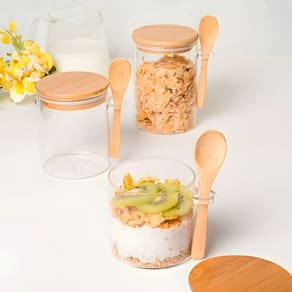 - 01 Pote De Vidro 450 ml Com Tampa De Bambu.