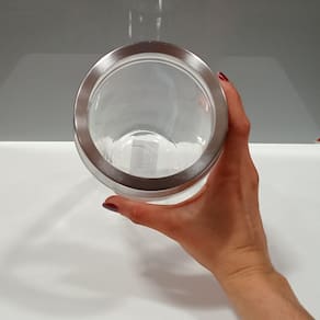 Altura: 22 cm Largura: 12 cm Profundidade: ,5 cm Espessura: ,5 cm Peso: 0,68 Kg Diâmetro da Base: 7,9 cm Diâmetro do Corpo: 11 cm Diâmetro do Topo: 10 cm Material: Vidro Cor: Transparente