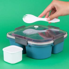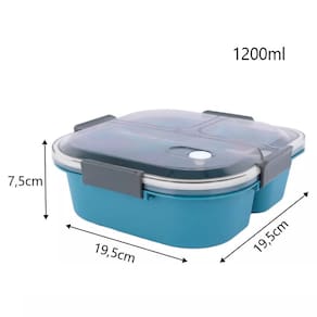 Bento Box de 3 Compartimentos da Série de Cores Sólidas 1200mL Azul Instruções de uso: 1. Temperatura de operação do produto: -20 °C a 100 °C; 2. Adequado para micro-ondas (a tampa e os utensílios devem ser removidos), não utilize em fornos ou esterilizadores; 3. Evite o uso com alimentos líquidos para prevenir vazamentos. Atenção: Produto de plástico, mantenha longe do fogo. Marca: Não Informado