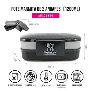 Pote Marmita de 2 Andares 1200ml Jacki Design Preto - ATENÇÃO OS OBJETOS NA IMAGEM SÃO ILUSTRATIVOS NÃO ACOMPANHA A MARMITA !