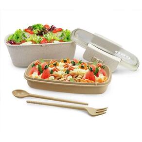 Pote Marmita Ecológica com Divisória 800ml Jacki Design Creme - ATENÇÃO OS OBJETOS NA IMAGEM SÃO ILUSTRATIVOS NÃO ACOMPANHA A MARMITA !