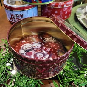 Deixe seu Natal ainda mais especial com o Pote Redondo de Metal Decorado! Perfeito para decorar, presentear ou armazenar biscoitos, doces e objetos.