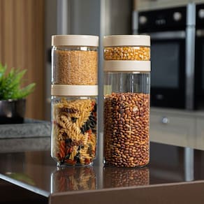Pote organizadores Conecta sao porta mantimentos que se conectam entre si. Perfeitos para cozinhas mais compactas, e para armazenar diversos mantimentos, como arroz, feijao, cafe, guloseimas, entre outros. Os potes possuem tampas de alta vedação, um design inteligente e arrojado. Fabricado em material Pet, é um produto de alta qualidade, atoxico, reciclavel e muita transparencia.