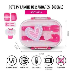 Pote p/ Lanche de 2 Andares Infantil 400ml Jacki Design - Piccolino Pink - 12 itens com 15% OFF | 24 itens com 20% OFF