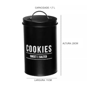 1 Pote para Biscoito Manhattan em Aço Galvanizado Preto 1,7 Litros POTE179PT - Hauskraft