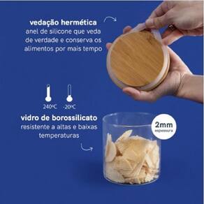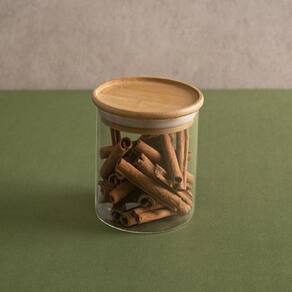Esse é o pote de vidro hermético redondo de 500ml para mantimentos com tampa de bambu.