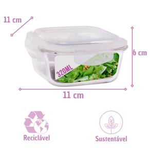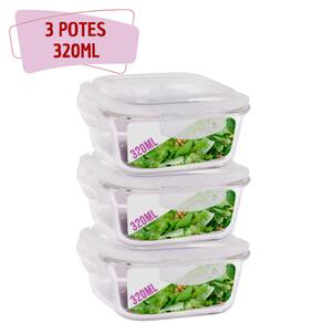 Pote de Vidro com Tampa Hermética Quadrado 320 ml 3 Unidades