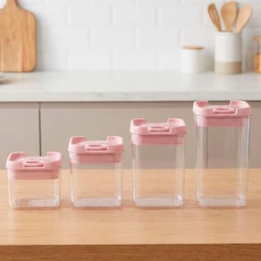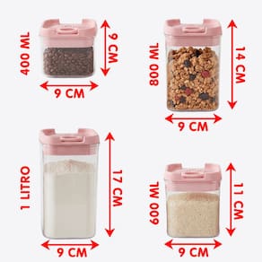 Conjunto Porta Mantimentos Com 4pçs Quadrado 1L x 800ml x 600ml x 400ml