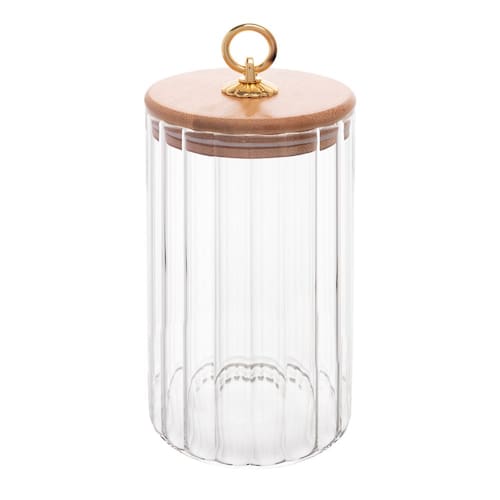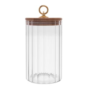 O Porta Mantimento de Vidro Canelado com Tampa de Bambu e Puxador de Metal Classic da Wolff é a escolha ideal para quem busca praticidade e estilo na organização dos alimentos.