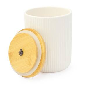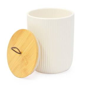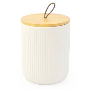 Pote Potiche Multiuso Canelado com Tampa de Bambu COR: BRANCO Possui diversas aplicações e por ter vedação hermética na tampa pode ser Utilizado para guardar biscoitos, temperos, café, açúcar entre outras coisas, confeccionado em cerâmica com tampa de bambu. PRINCIPAIS DESTAQUES - Dimensões 10 x 12,5 x 10 cm largura x altura x profundidade - Composição: Cerâmica e Bambu - Vedação na tampa com anel de silicone - Modelo com relevo canelado Ean: 7899766704894