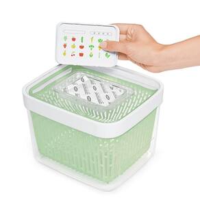 Pote Quadrado Greensaver 4L Oxo Com Filtro De Carvão é ideal para prolongar a vida útil dos alimentos. Com capacidade para 4 litros, é feito em policarbonato de alta qualidade. Possui cesto que impede contato dos alimentos com a água, mantendo-os frescos por mais tempo. A tampa conta com filtro de carvão ativado, que retarda o envelhecimento dos alimentos. Filtro feito de casca de coco, seguro e 100% natural. Marca OXO, conhecida por seu design inovador. Filtros de reposição vendidos separadamente.