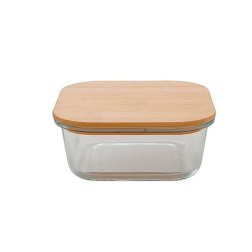 Pote Quadrado Vidro Boro Com Tampa Bambu 800 Ml Mimo Style